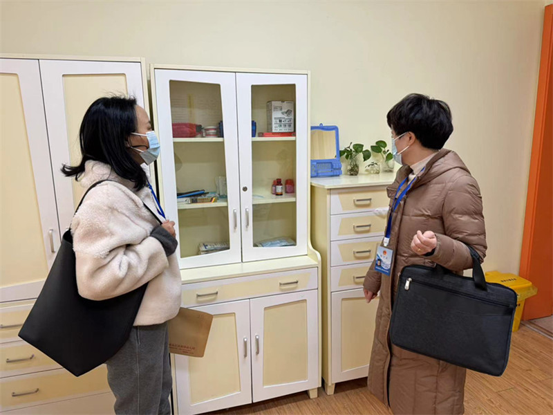 责任督学在李敏娟园长的陪同下,依次查看了保健室、食堂、学校室内外场地等,通过实地考察和现场询问的方式,对幼儿园的园舍建筑设施安全、消防安全、饮食卫生和保健室物品管理等情况进行了全面细致地检查。