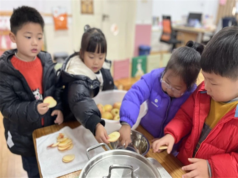 在本次冬至活动中,孩子们通过视频、绘本、谈话等各种形式了解了冬至的来历与习俗,并在包饺子、腌酸菜、制作苹果蜜枣汤等不同形式的活动中传承冬至习俗,在实践活动中体验制作的乐趣,进一步感受中国传统节气的内涵与魅力。在活动中,孩子们也留下了一份属于他们冬日的快乐时光,一颗饱含传统情怀的种子潜移默化地种植在孩子们的心中。