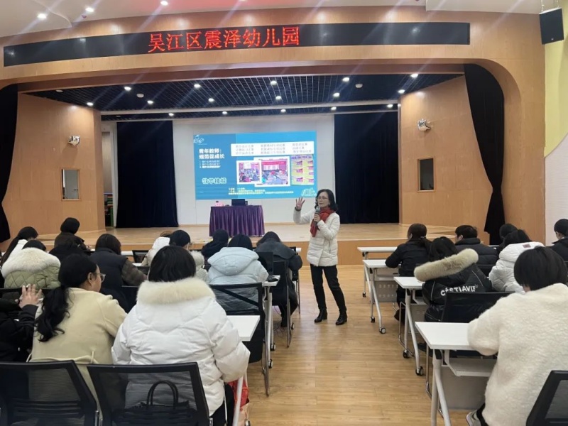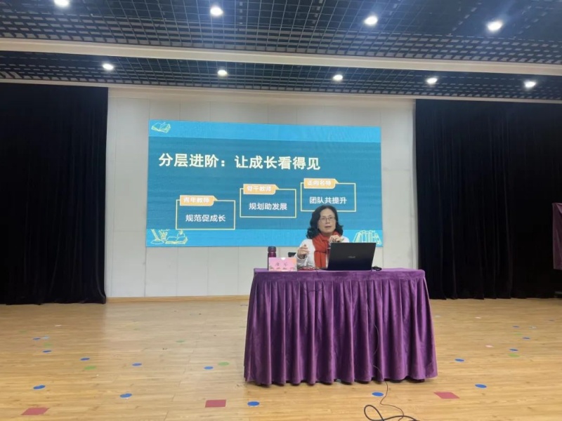 青年教师的进步直接关系着幼儿的成长,也是一所学校发展的关键所在。为了促进教师专业成长,2024年1月26日下午,我园特邀江苏省特级教师、姑苏教育名家唐琴主任为我们作题为《分层进阶,让成长看得见》的专题讲座。