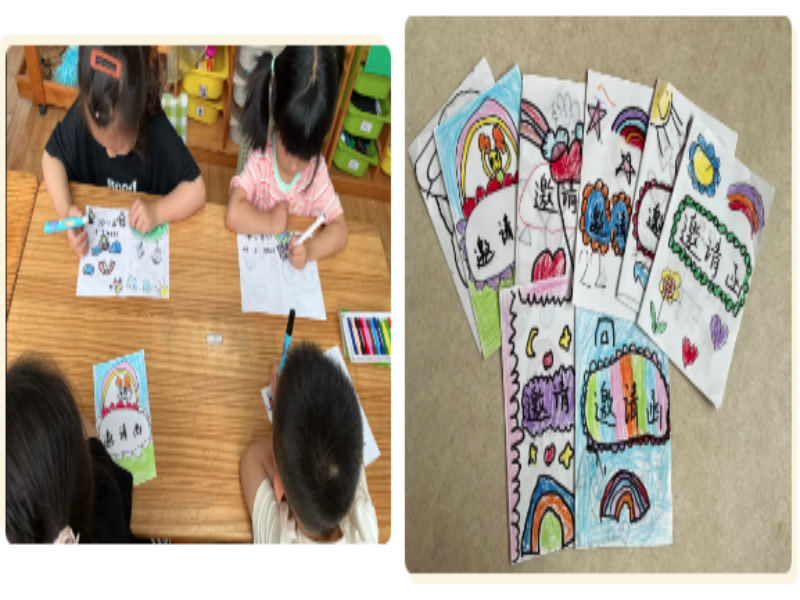 有了初步的想法,一场专属孩子们的六一节日就这样悄悄地开启了。活动前夕,孩子们用他们大胆的想象,设计制作出了一张张独具特色的邀请函,诚挚地邀请爸爸妈妈参加活动。