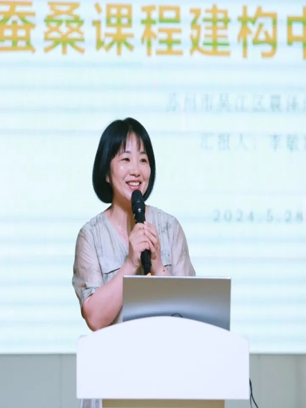 震泽幼儿园李敏娟园长以《蚕桑课程建构中的思与行》为题作了汇报。她从课程内涵、核心理念、实施策略及价值意义等方面详细阐述了该园在蚕桑课程建构过程中的思考与行动,全方位展示了震幼人在蚕桑课程建设中的成长与蜕变。