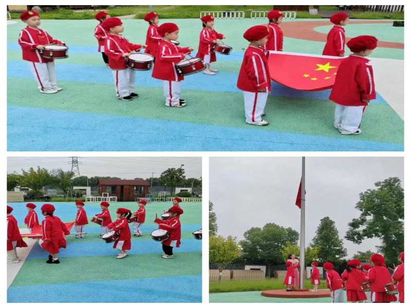 我追随的光,是五星红旗上五角星的光!小朋友们迈着坚实的步发,高举五星红旗向我们走来!在孩子们专注和自豪的目光中,五星红旗缓缓升起。看着那一抹鲜红,爱国的种子在每一颗纯净的心田里生根发芽。