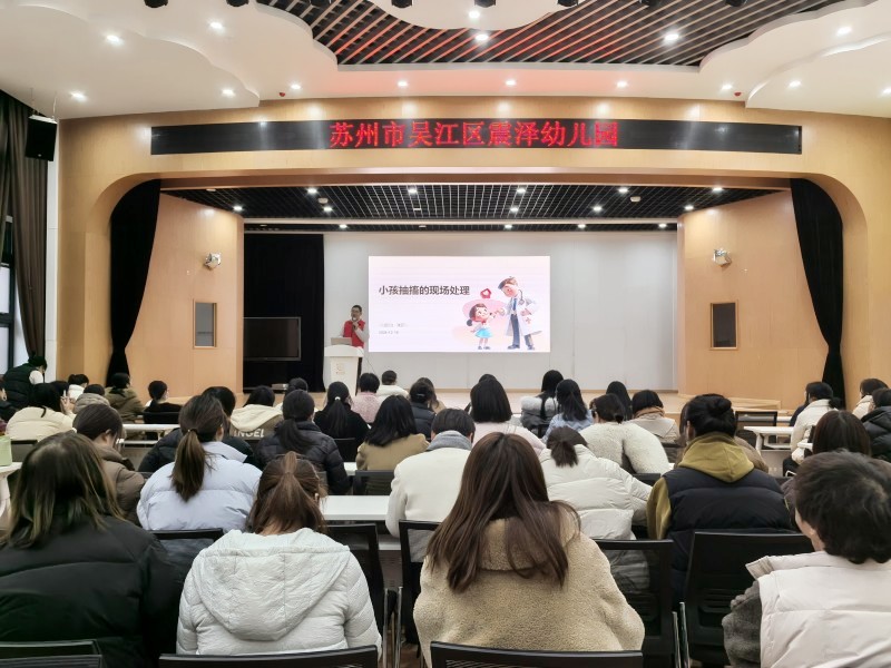 为全面普及和强化急救知识和技能,增强教职工安全防范意识和应对突发事件的处置能力,保障幼儿安全、健康成长。2024年12月18日,震泽幼儿园邀请吴江区第四人民医院中医康复科主任、吴江区红十字会救护师资张云海主任为全体教职工开展幼儿急救知识专题培训。