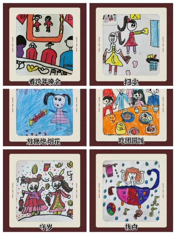 “元”是开始,“旦”刚刚越过地平线初生的太阳,中国自古以来就以“元旦”代指新年开始的第一天,1949年新中国成立之后正式将公历的1月1日定为元旦。在这样一个充满希望又寄予美好的节日,人们扫尘、守岁、吃团圆饭、观看跨年晚会……新与旧的中国印记在这个节日里和谐交融,孩子们也用他们稚嫩的画笔将这一天的美好描绘。