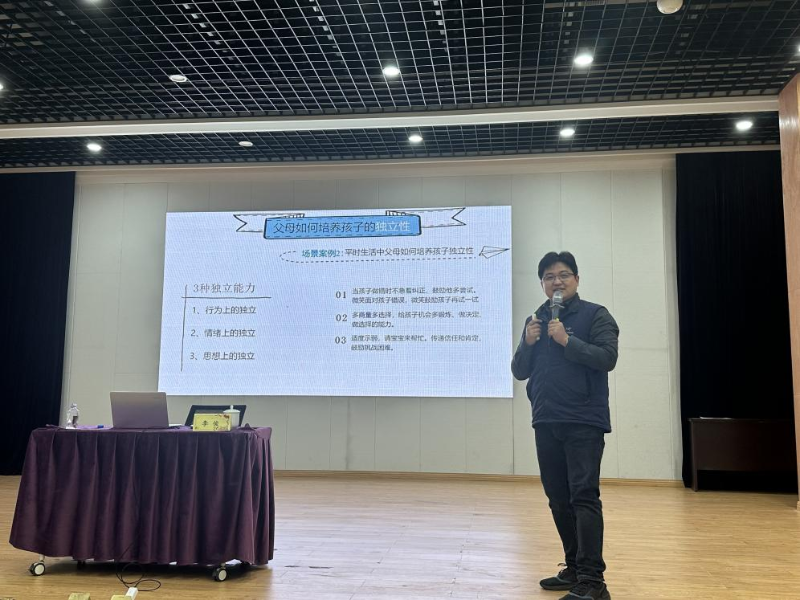 讲座中,李俊老师以生动的案例向家长们详细阐述了培养孩子独立性和自信心的重要性。此外,李俊老师还分析了父母在教育过程中可能影响孩子独立性的行为,并针对如何培养孩子的独立性提供了许多切实可行的方法和建议。