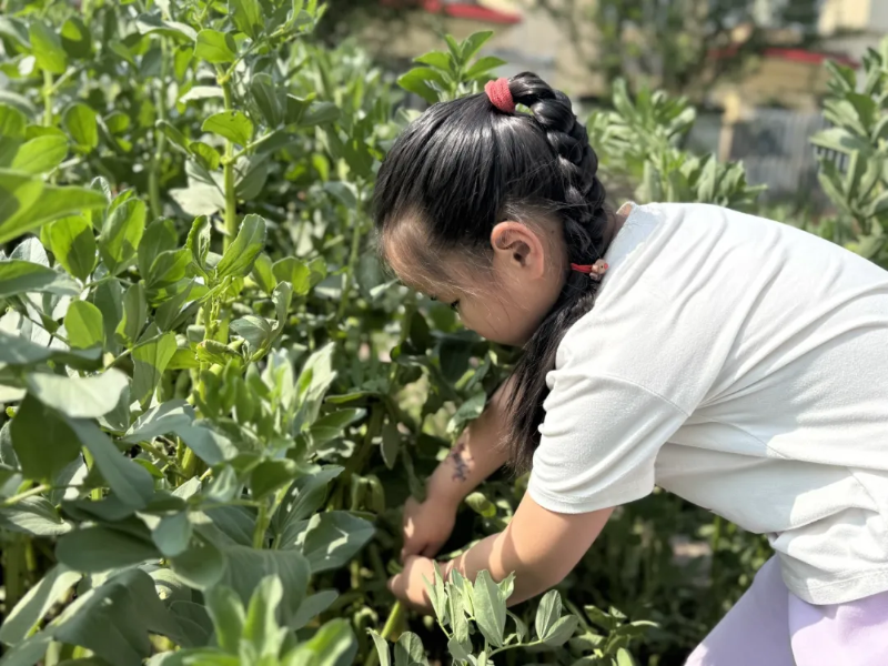 谁的儿时记忆里没有一碗香喷喷的立夏饭呢?在震泽,立夏饭又叫“野火饭”,在野外自己搭灶、拾柴火烧出来的立夏饭才香呢!大班的孩子们规划了烧野火饭的场地,用砖块搭建了灶台、架起了大铁锅。小朋友们还在菜园里采摘了自己种植的豌豆和蚕豆,围坐在一起剥豆荚。
