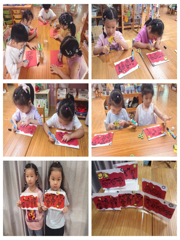 在充满童趣的“祖国妈妈生日画展”中,孩子们用手中的画笔,描绘对祖国的热爱。有的画迎风飘扬的五星红旗,有的画雄伟庄严的北京天安门,还有的画一家人幸福的笑脸……每一幅画都饱含着孩子们对祖国的深情告白,每一抹色彩都诠释着对家国团圆的美好祝愿。