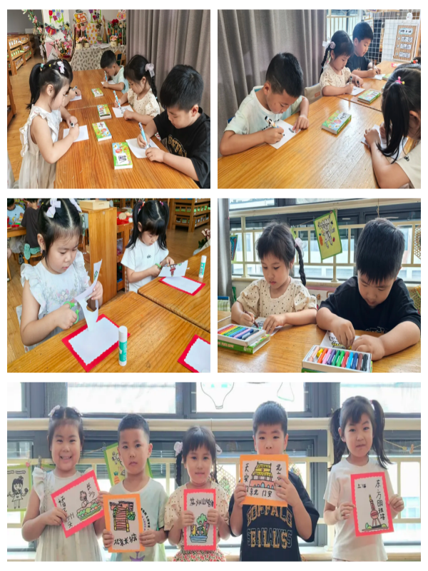 大班的哥哥姐姐们开启了一场别开生面的“节日明信片”创作之旅。他们将对祖国的祝福、对中秋的期盼,融入到小小的明信片上,并设计成独具特色的“邮票”——有绘着上海东方明珠的,有画着万里长城的,还有带着可爱玉兔的……一张张精美的明信片,仿佛是孩子们与祖国、与亲友之间传递美好祝愿的“心意信使”。
