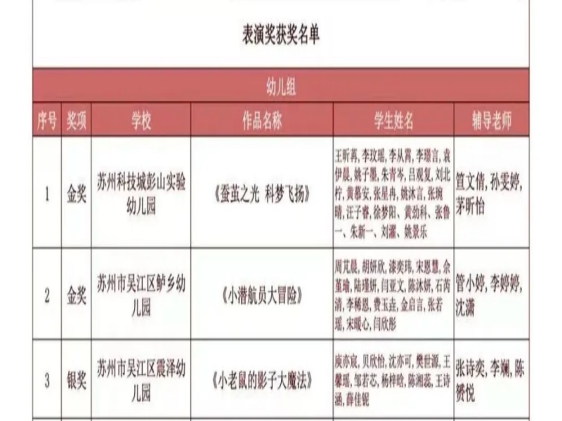 此外,震泽幼儿园10位参演学生获幼儿组表演银奖