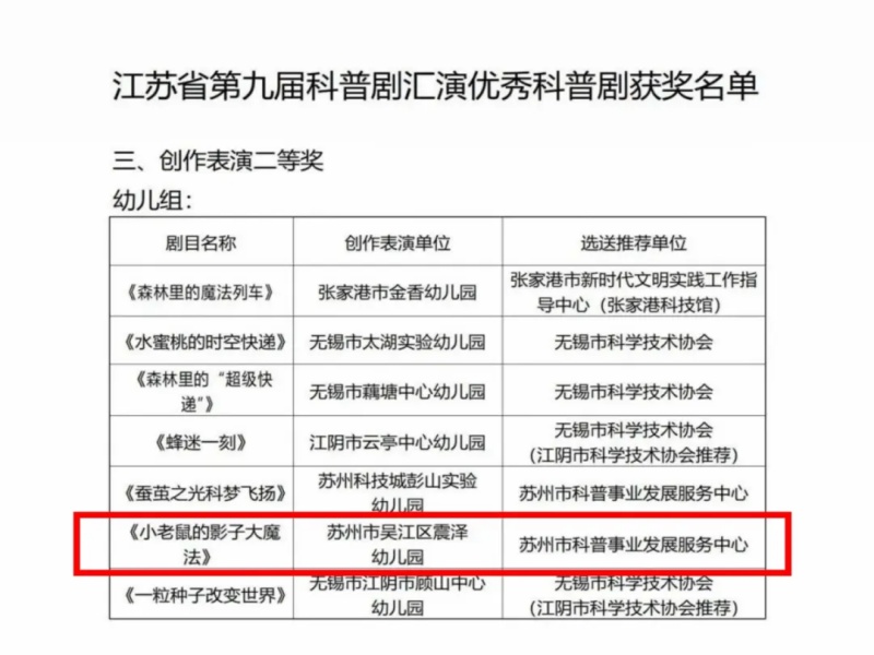 我园的科普剧作品还参加了江苏省第九届科普剧汇演评审活动,在全省81个作品中,再次斩获幼儿组“二等奖”的好成绩!