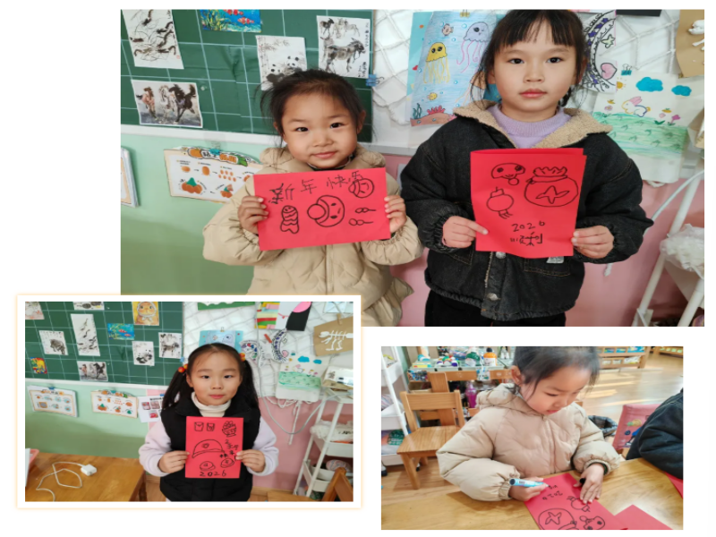 元旦的仪式感,藏在宝贝们亲手制作的新年贺卡里!彩笔在卡纸上勾勒出鞭炮、小马、福字等新年元素,每一笔都是孩子对新年的美好期许。