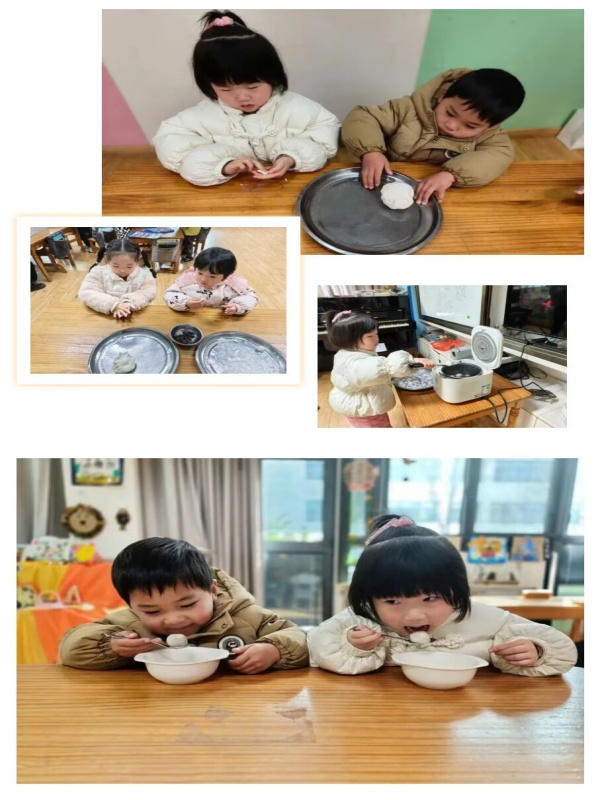 元旦的快乐,当然少不了舌尖上的美味!食堂的阿姨们早早准备好了食材,老师带着孩子们一起制作香甜软糯的汤圆。搓一搓、揉一揉,圆滚滚的汤圆在掌心成型,下锅煮熟后,咬上一口,甜香四溢。