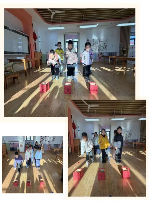 砸福游戏点燃了幼儿园的欢乐氛围!宝贝们踩着彩色圈圈蹦跳向前,举着道具瞄准福字靶心用力砸去,欢声笑语中,每个孩子都收获了自己的“福气”。